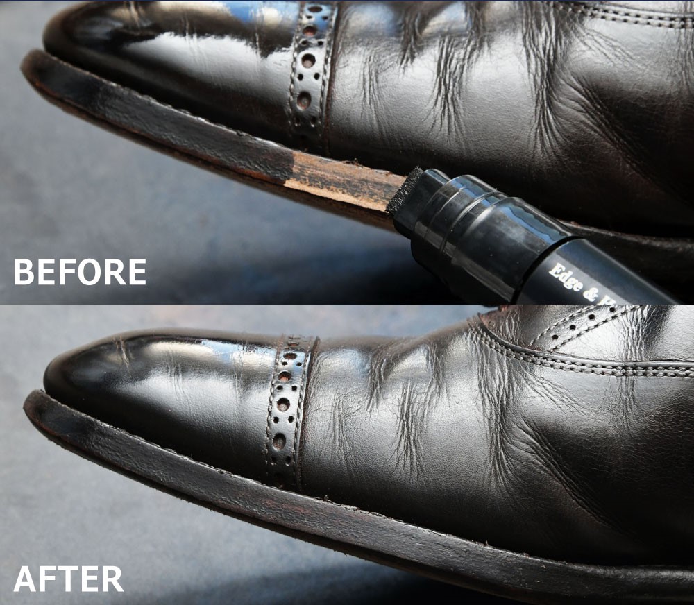 The core of the pen tip is just the right hardness to match the roughness of the edge, yet is easy to apply. Its width is the same as the edge of a men’s shoe, so there is no need to worry about it going over the edge significantly when applying.