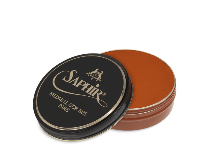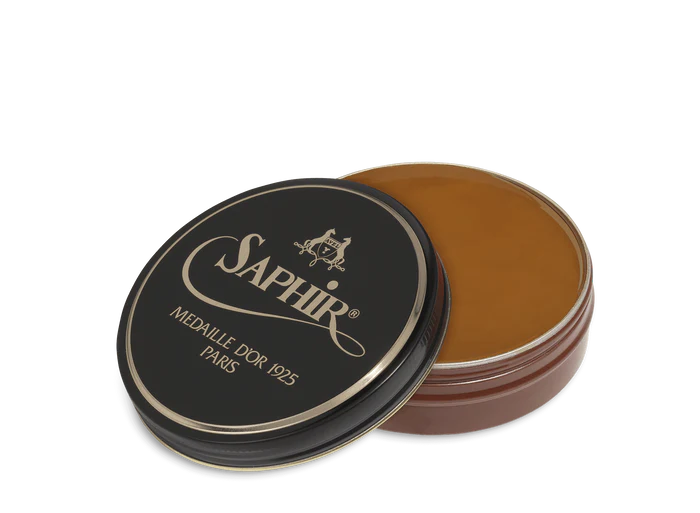 Saphir Pâte De Luxe wax polish is a unique traditional formulation. The finest natural oils and waxes are used to achieve superior cleaning, nourishing, and protection while producing a high-gloss shine to leather goods.